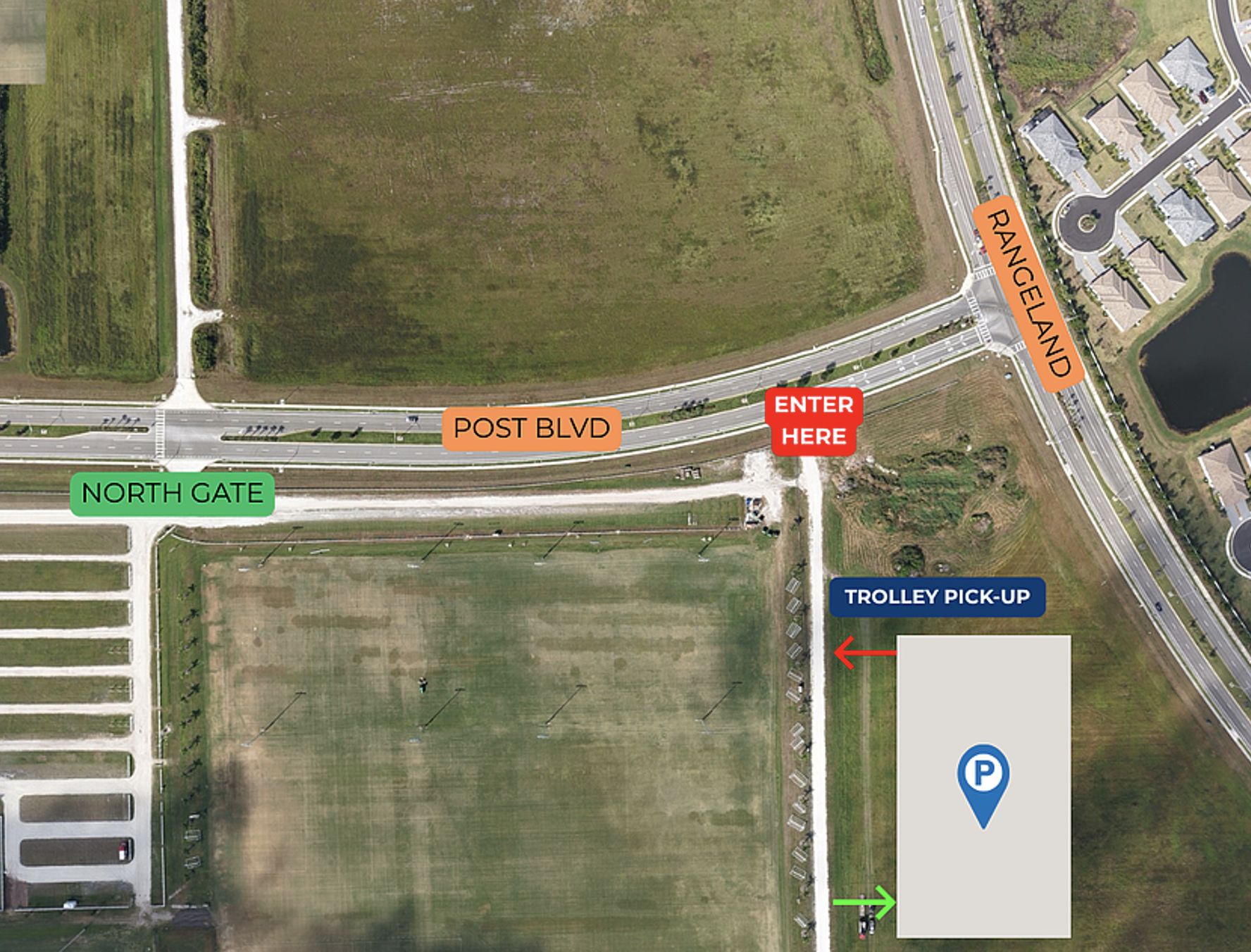 The main parking will be set up at the Premier Sports Campus, but negotiations are ongoing with some other landowners in the area in case there’s a need for overflow parking.