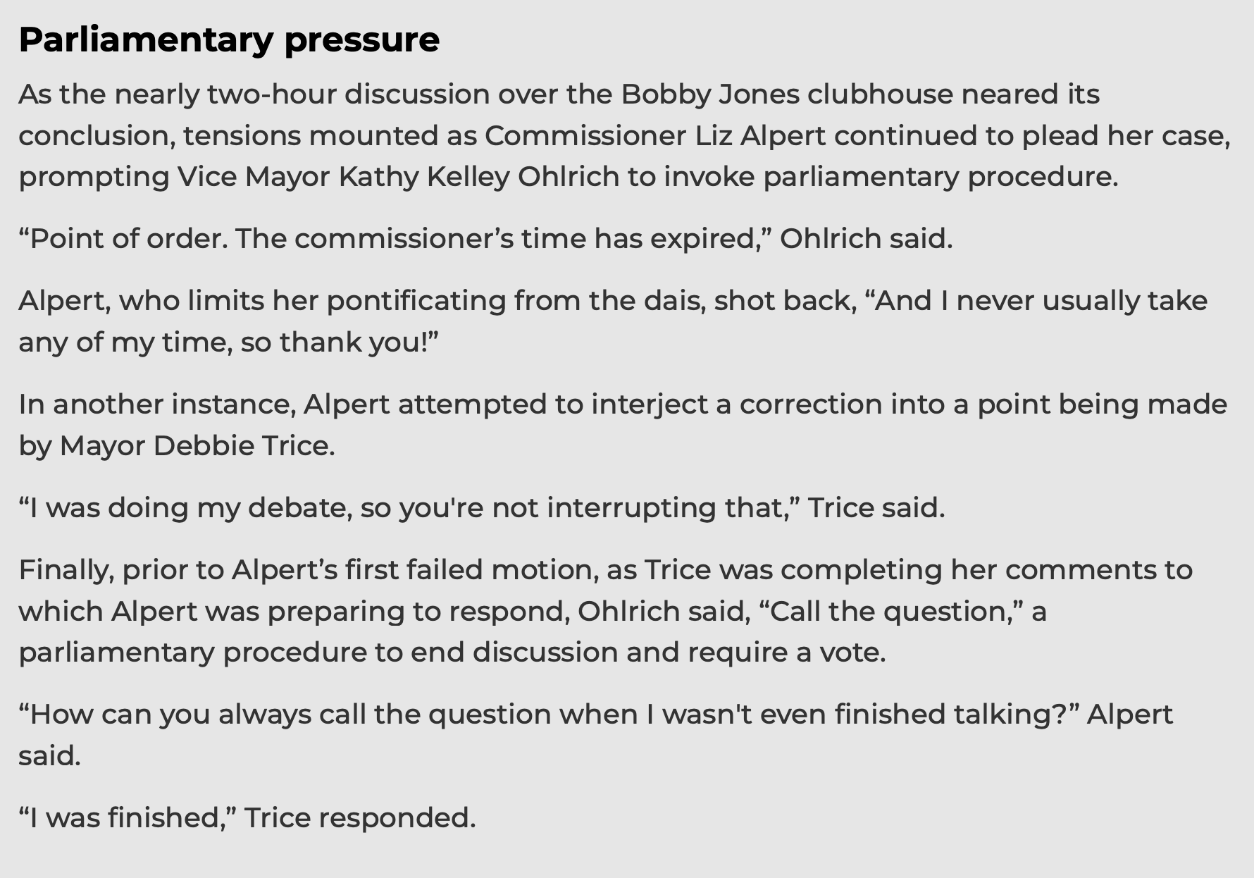 And also gone, at least for one meeting of the Sarasota City Commission, is the traditionally collegial atmosphere at the dais.